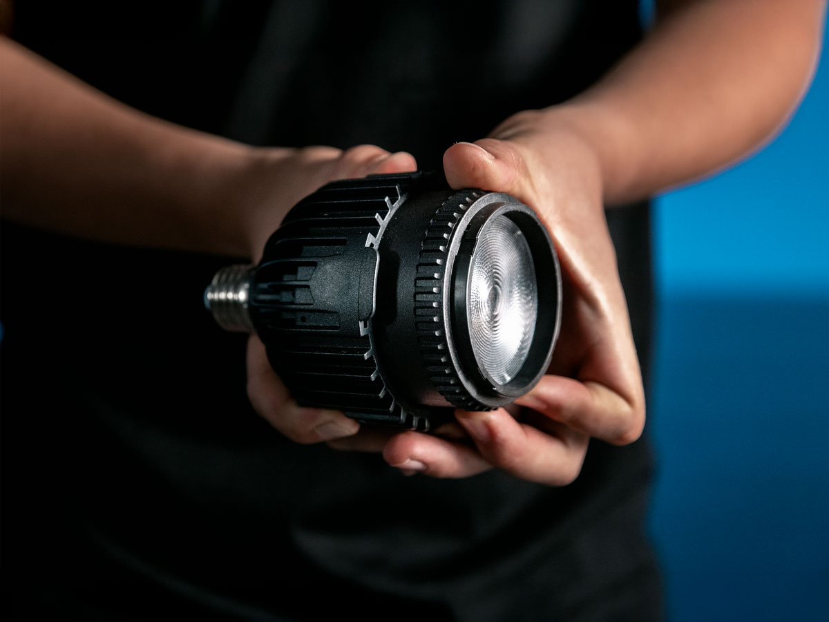 Astera SolaBulb ist eine zoomfähige Leuchte mit der Helligkeit einer 50W PAR Lampe und einem einstellbarem Abstrahlwinkel von 15°–50°, optimierter Fresnel-Linse und robuster, lüfterloser Bauweise. Ein vielseitiges Downlight, das Film- und Eventproduktionen genau das bietet, was sie brauchen, und zugleich mit einem eleganten, architektonischen Look überzeugt.