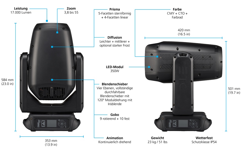 Der Lonestar Prime von High End Systems by ETC ist ein Framing-Scheinwerfer mit außergewöhnlich hoher Lichtleistung und professionellen Features – und das in einem kompakten Gehäuse. Dank seines wetterfesten Designs eignet sich der Lonestar Prime ideal für vielseitige Rental-Anwendungen sowie für Veranstaltungsorte, die sowohl im Innen- als auch im Außenbereich arbeiten. Mit einer Lichtleistung von über 17.000 Lumen, verbesserter Farbwiedergabe, einer separaten CTO-Flag, einer umfangreichen und robusten Gobo-Bibliothek sowie weiteren Funktionen ist der Lonestar Prime ein leistungsstarkes Werkzeug mit großer Wirkung für alle Arten von Live-Events.