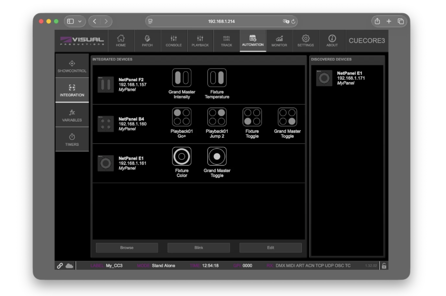 Die NetPanels können direkt mit den internen Funktionen von CueCore3 verbunden werden und erfordern nur minimale Konfigurationsschritte für ein vollständig optimiertes Setup.