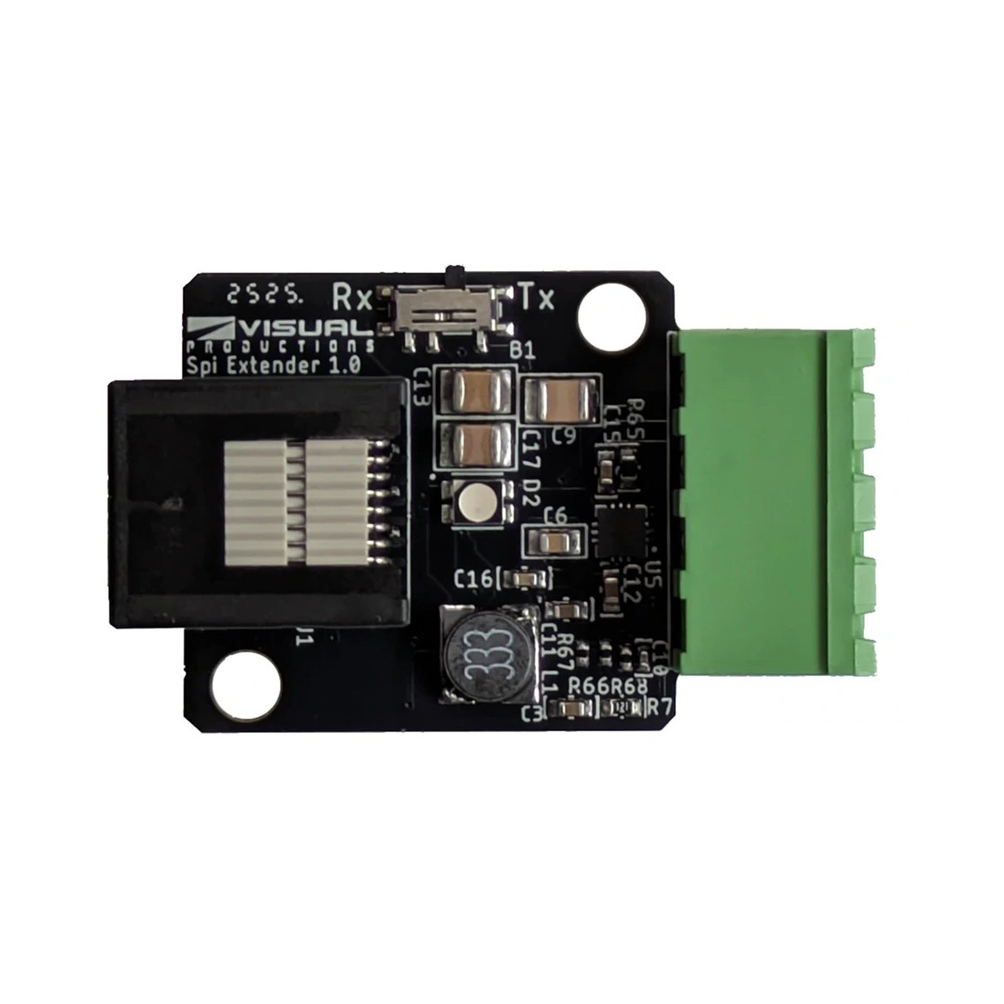 Schließen Sie mühelos die Lücke zwischen Ihrem SPI-Controller und LED-Streifen mit dem SpiExtender, der Ihr Setup über Standard-CAT5- oder höhere Kabel auf bis zu 250 Meter erweitert und durch die Umwandlung des SPI-Signals in ein starkes, zuverlässiges Differenzsignal eine einwandfreie Leistung über große Entfernungen garantiert. Einfach zwei SpiExtender pro Signalpfad koppeln – einen als Sender am Controller-Ende und einen als Empfänger an den LEDs – und dank des praktischen eingebauten Schalters zwischen den Modi wechseln. Vollständig kompatibel mit SpiNode und SPI-Controllern von Drittanbietern bietet der SpiExtender maximale Flexibilität und höchste Zuverlässigkeit für Ihr LED-Projekt.